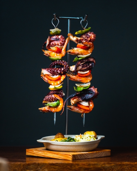 Espetadas de Polvo com Camarão